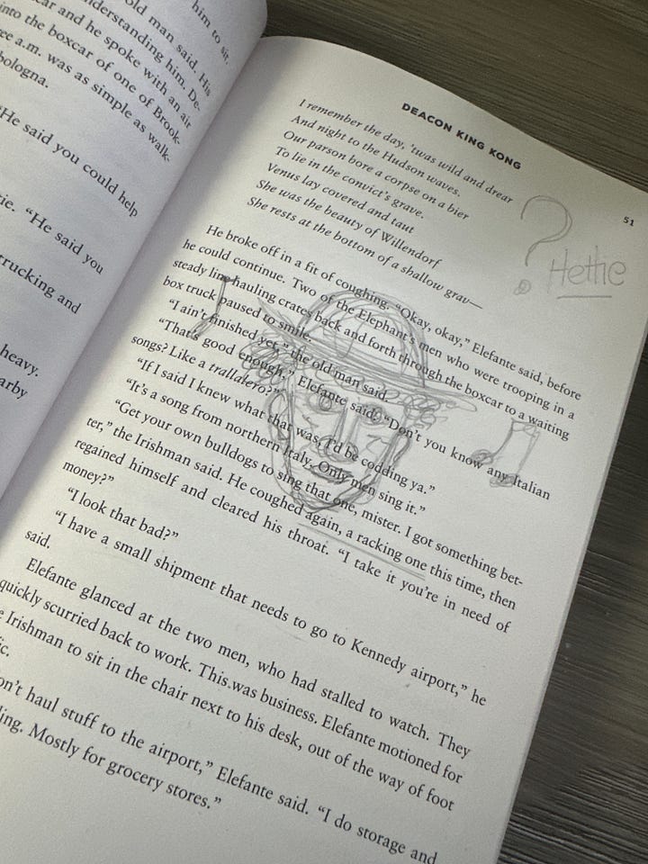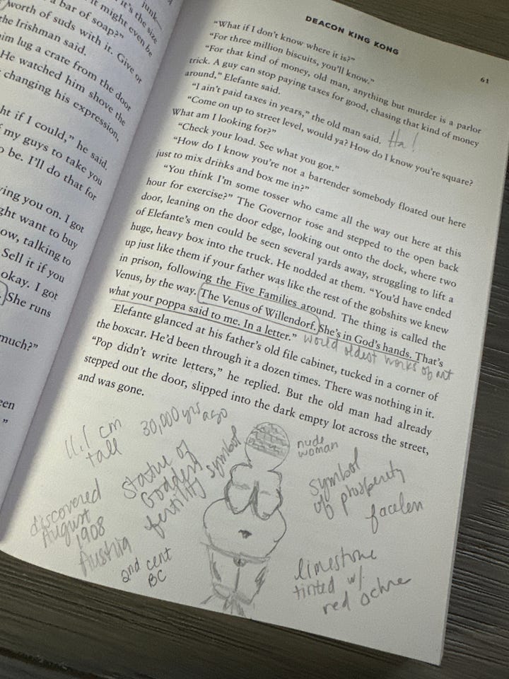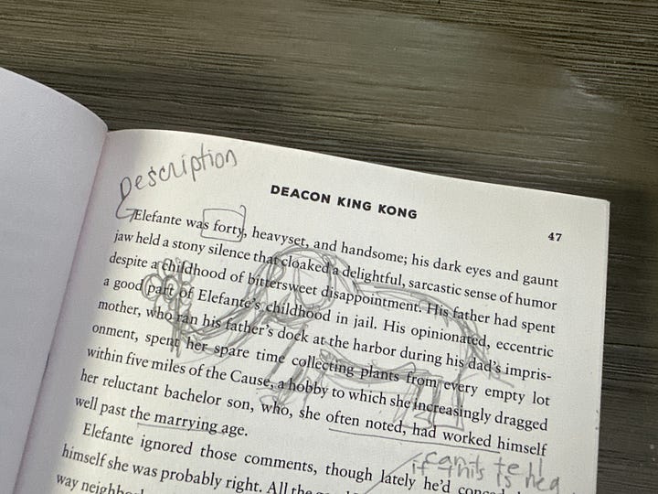 Shari and I would love to hear your thoughts on Deacon King Kong as we go along. Share your insights, questions, or snippets of writing in the comments or our chat thread—it’s always more fun when we do it together!